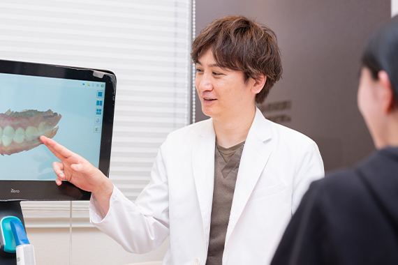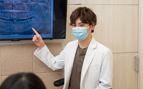 初診のかたには、治療を始める前に無料カウンセリングを行っています。まずはお悩みやご希望を丁寧に伺い、当院の診療方針や治療の進め方についてわかりやすくご説明します。簡易的な口腔内チェックも行い、現状を一緒に確認しながら、患者さんのペースに合わせて進めていきます。内容にご納得いただけましたら、その場で次回以降のご予約をお取りいただき精密検査へと進みます。無理に治療を勧めることはありませんので、どうぞ安心してご相談ください。