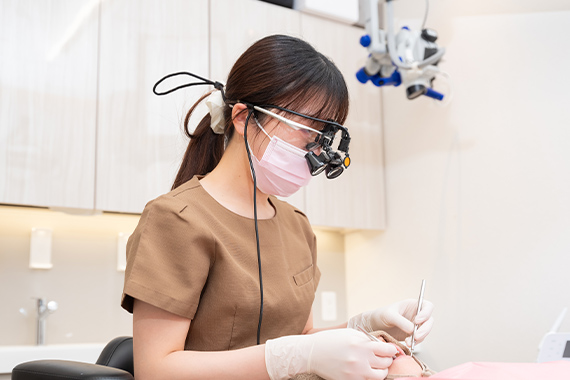 むし歯などの疾患が見つかりましたら、医師が治療を行います。歯科疾患は早期発見・治療が重要であり、その後の歯の寿命に直結すると言われています。併せて、患者さんの噛み合わせが適正でない場合、噛み合わせの治療もご提案いたします。